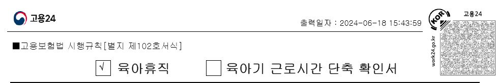 제가 회사에서 받은 육아휴직확인서예요. 24년 6월 기준이지요.